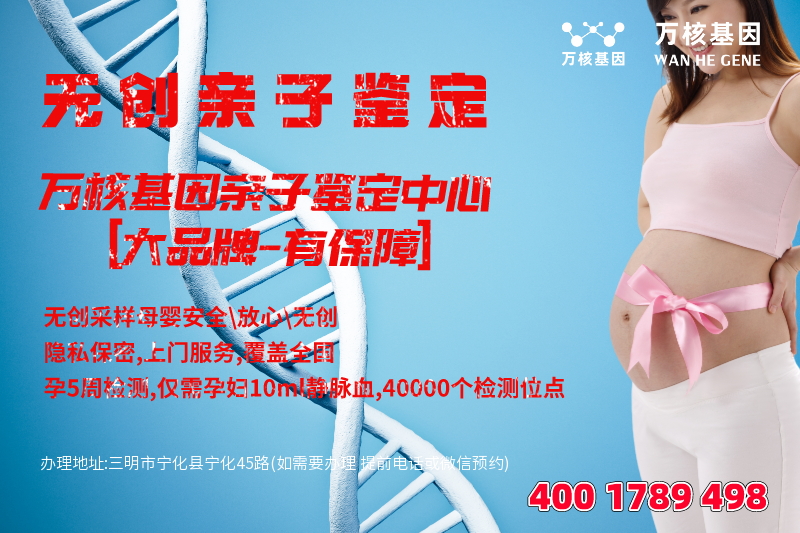 宁化个人隐私亲子鉴定办理地址:三明市宁化县宁化45路(如需要办理 提前电话或微信预约)-预约电话:4001789498,服务地区包括:梅列区、三元区、明溪县、清流县、宁化县、大田县、尤溪县、沙县、将乐县、泰宁县、建宁县、永安市等周边城市,可在线咨询:无创产前亲子鉴定、司法亲子鉴定、移民亲子鉴定、入户亲子鉴定、中考亲子鉴定、高考亲子鉴定、宁化个人隐私亲子鉴定等等咨询服务。